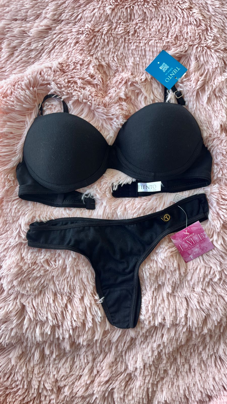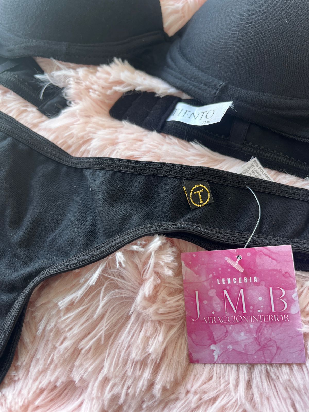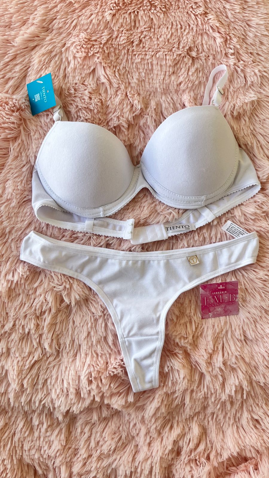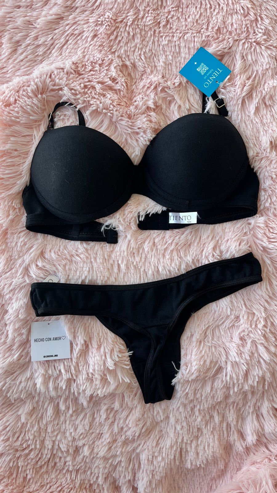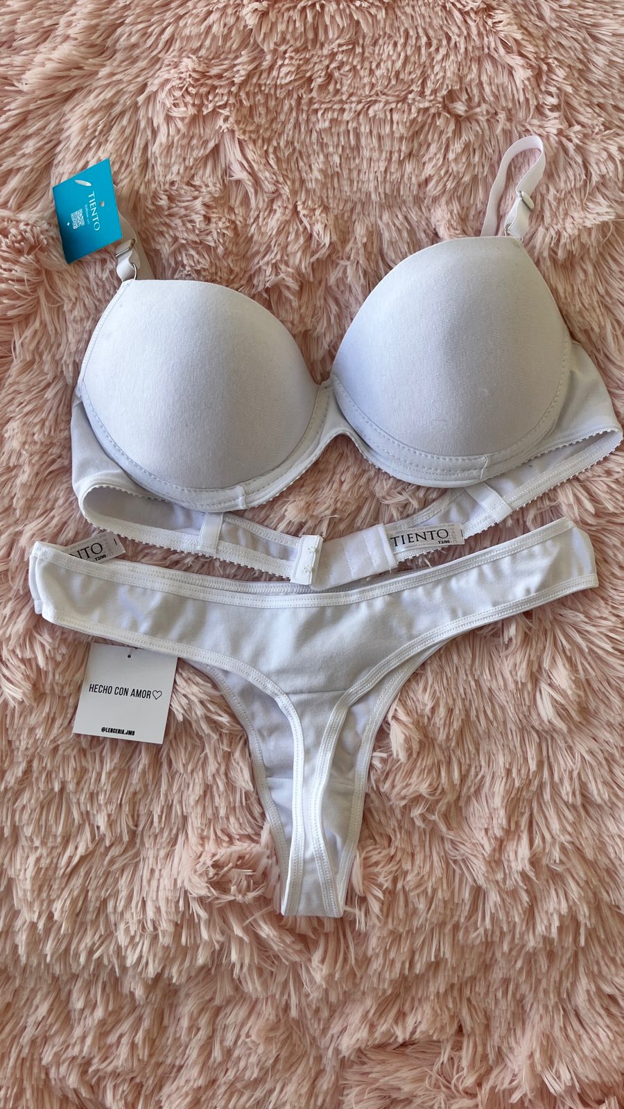 Conjunto taza soft push up con arco y gancho en espalda, tiene arandelas de metal con baño hipoalargenico. Junto con su colaless. Ambos realizados con algodón lycra.