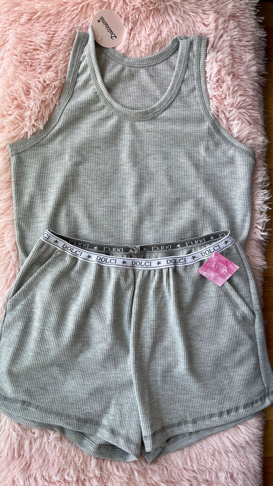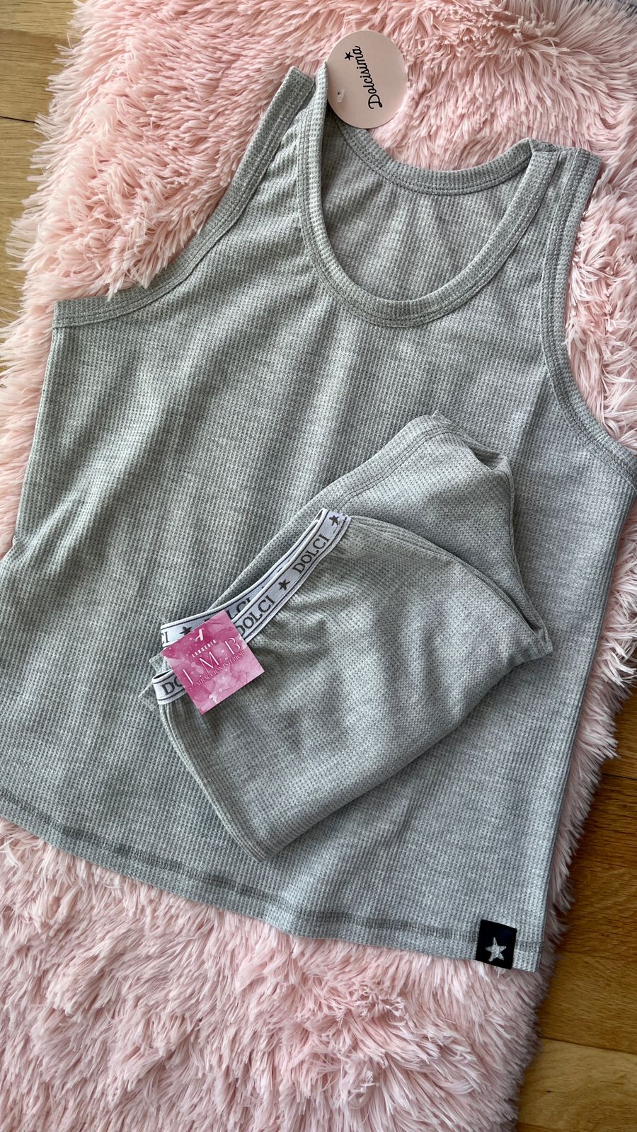 Pijama wafle, musculosa y short con bolsillos y cintura personalizada